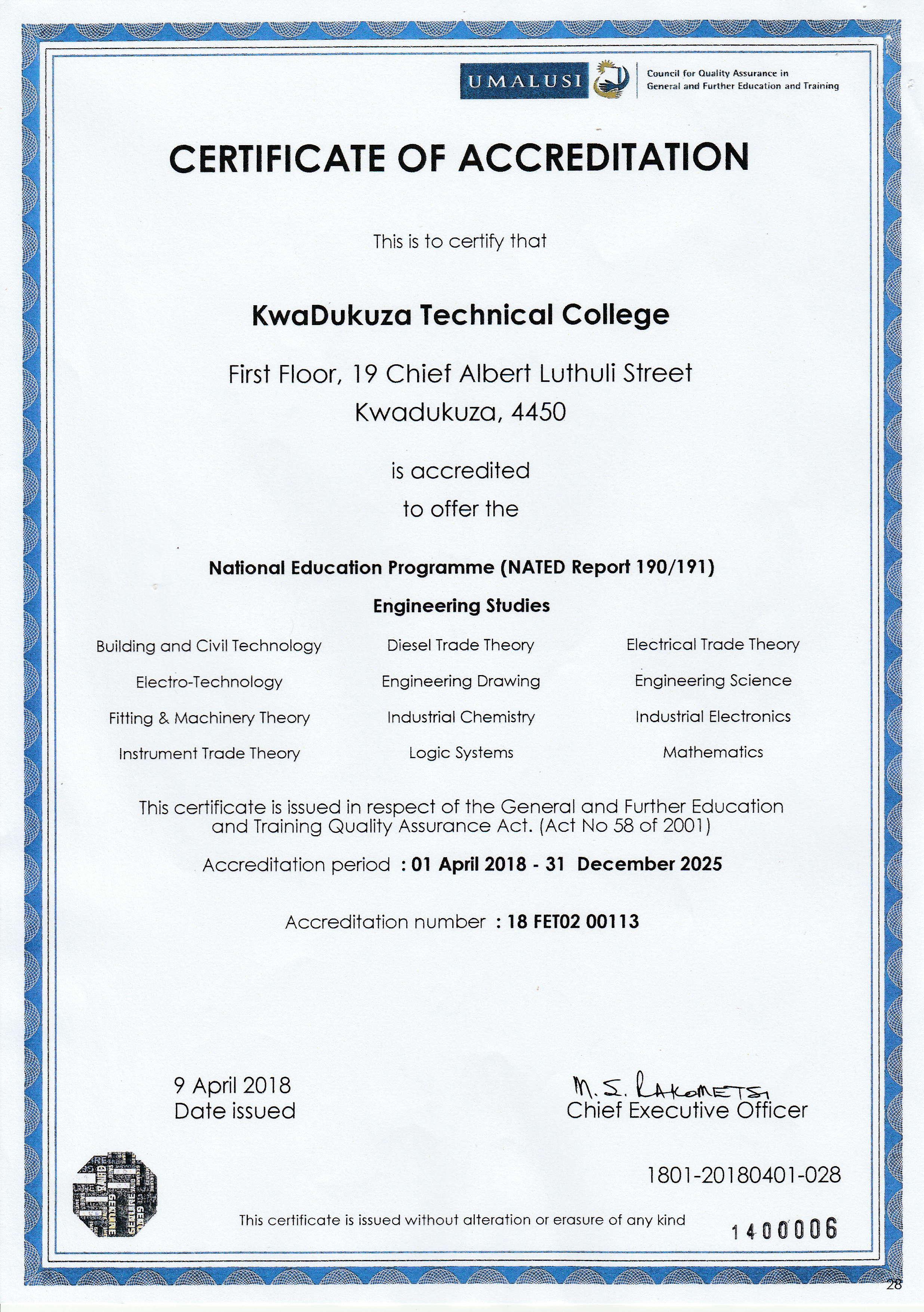 accreditations